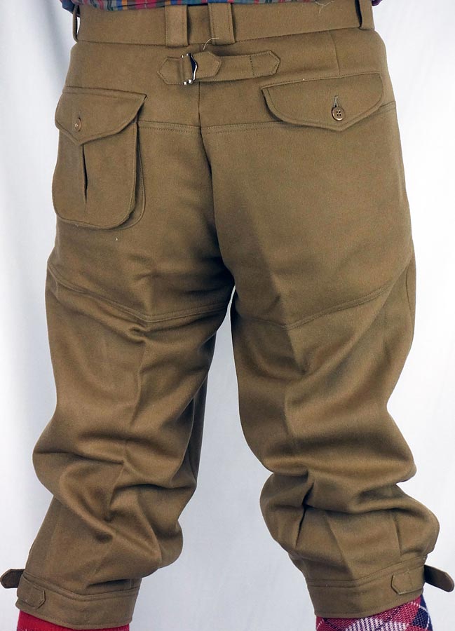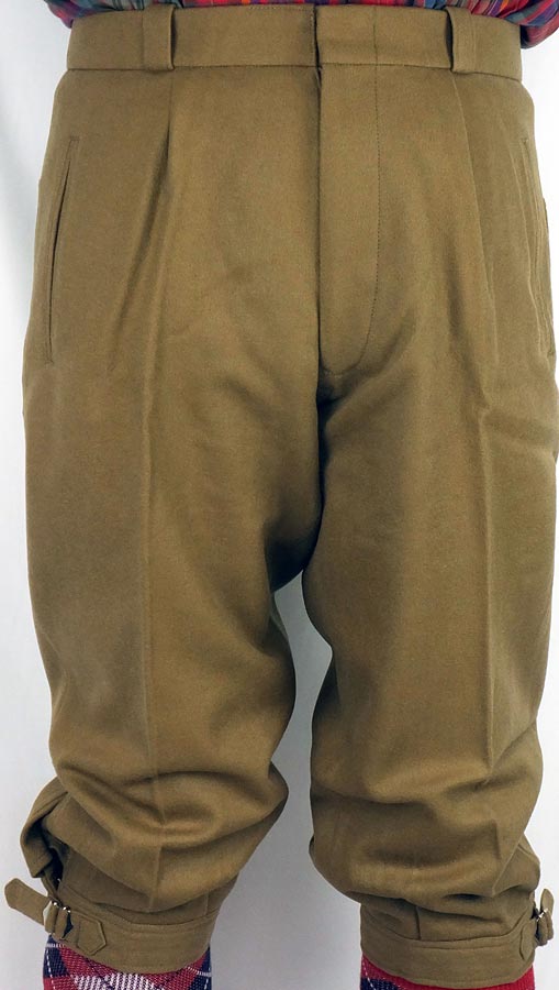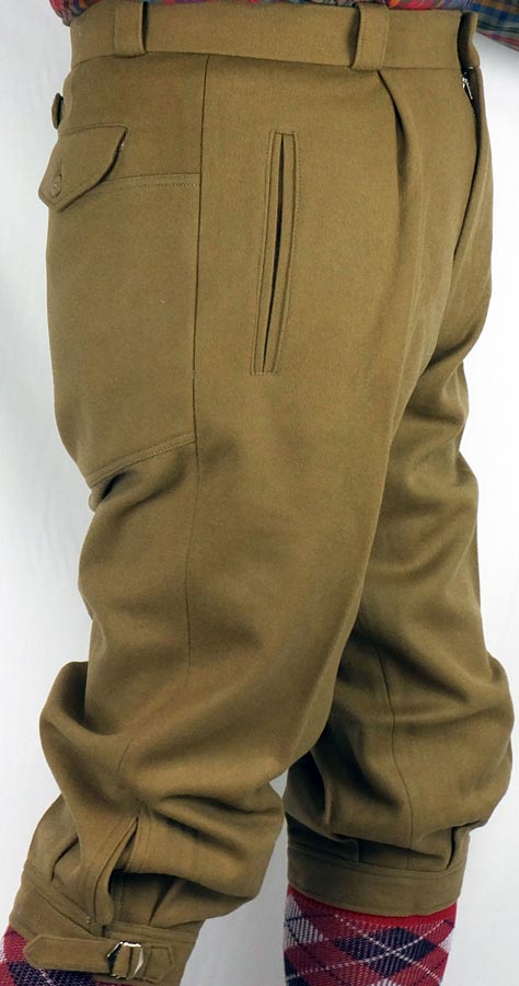 | サイズ調整が 可能 | ヒップ部分は、サイズ調整が可能な尾錠(金具)をつけました。 裾にはニッカホース(長い靴下)との相性の良い滑り止めつきです。 |