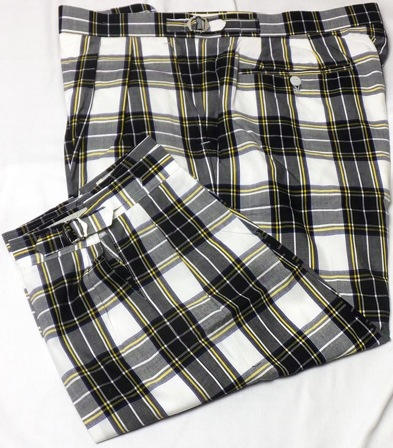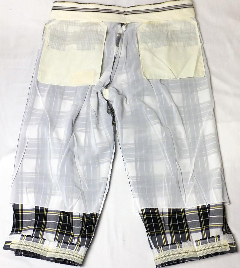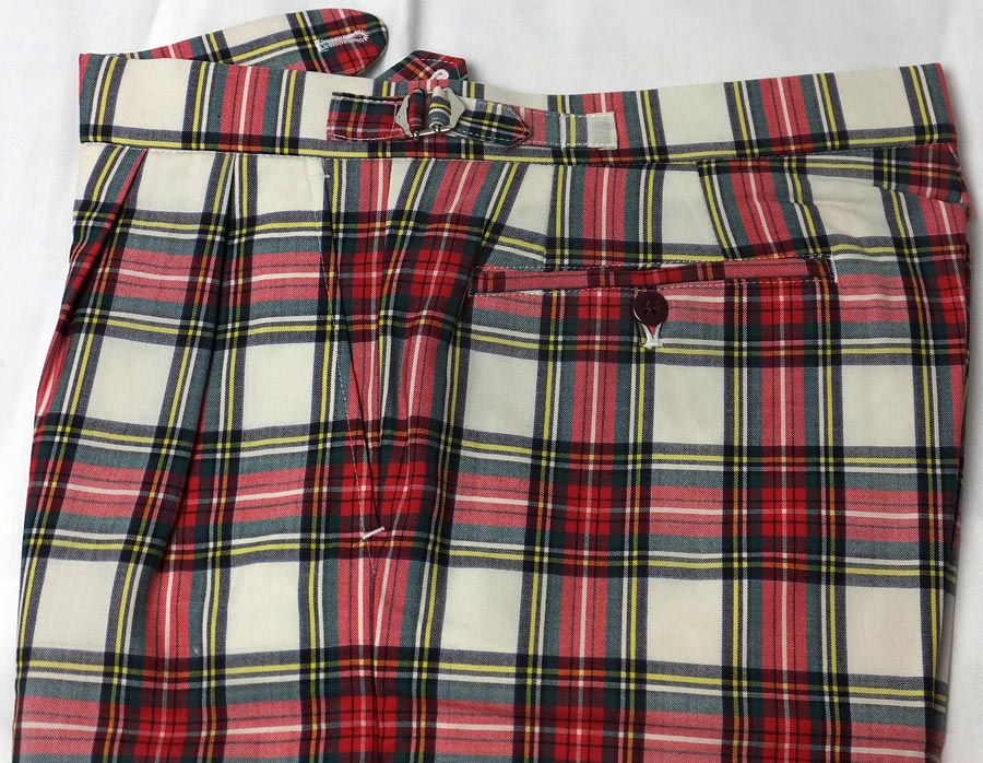 | フロント部分 | アウトタックのツータック。(外側に2cmのツマミ部分を、二つ取る事でシルエットに曲線美を与えています) |